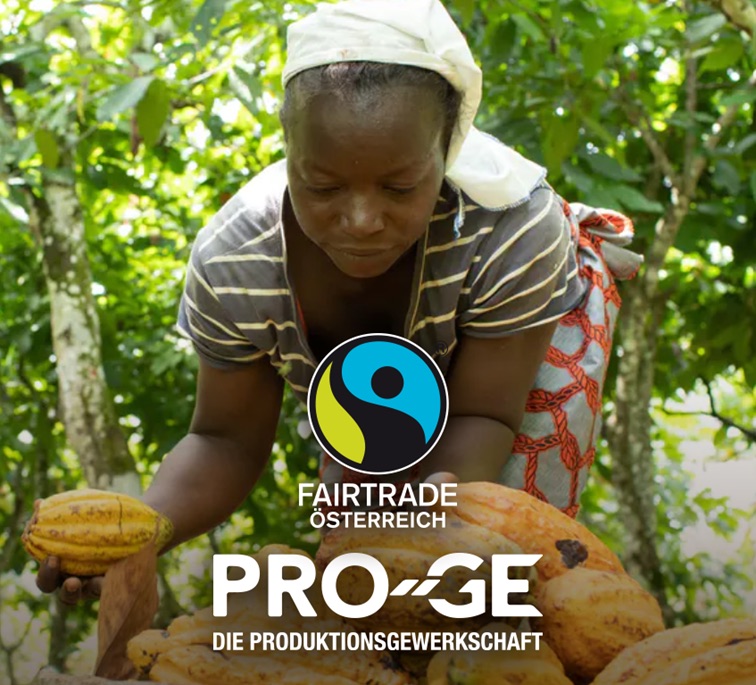 Obwohl jährlich Millionen Tonnen Schokolade konsumiert werden, leben die Kakao-Produzent:innen im Globalen Süden oft in Armut. Deshalb setzen sich PRO-GE und Fairtrade gemeinsam für faire Löhne und globale Produktionsbedingungen ein.