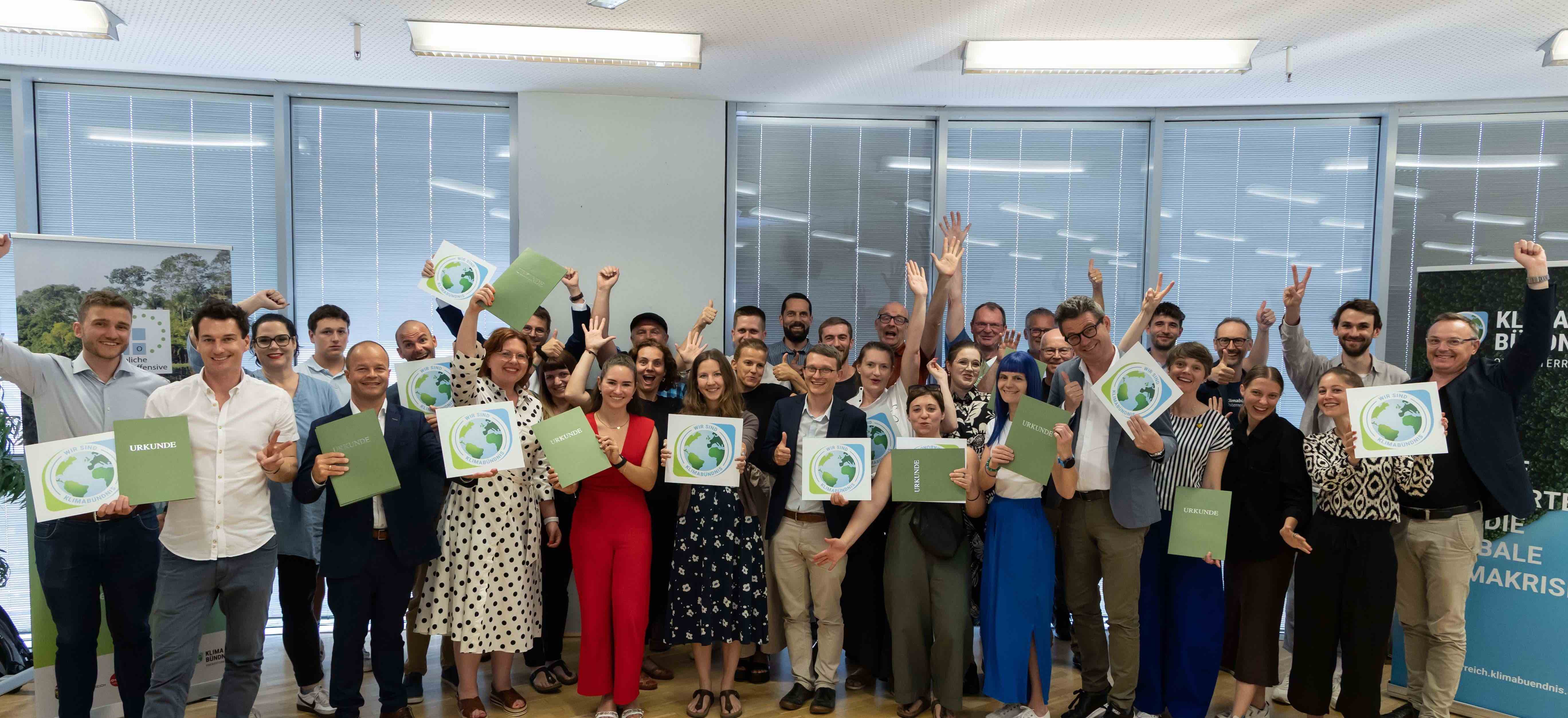 Im Rahmen der WeFair-Messe werden neue Betriebe in die Klimabündnis-Gemeinschaft aufgenommen. Die Urkunden überreichen Landesrat Stefan Kaineder und der Geschäftsführer des Klimabündnis Österreich, Ing. Mag. Norbert Rainer. Die neuen Mitglieder arbeiten nicht nur innovativ an einem besseren Klima, sondern haben sich auch verpflichtet, ihre eigene Klimabilanz kontinuierlich zu verbessern. Die gemeinsam mit den Betriebsberatern des Klimabündnis erarbeiteten Maßnahmen werden Schritt für Schritt umgesetzt.